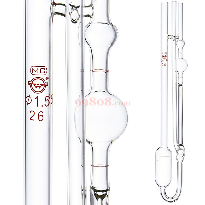 该系列乌氏粘度计是测定液体粘滞性及高聚物分子量的重要仪器,乌氏粘度计测量范围可达数万厘(mm2/S)。优点是使用方便,而且较其它类型粘度计精确。所以乌氏粘度计广泛应用子石油工业,化学工业,及其它工业部门和科学研究中。产品全长283mm。