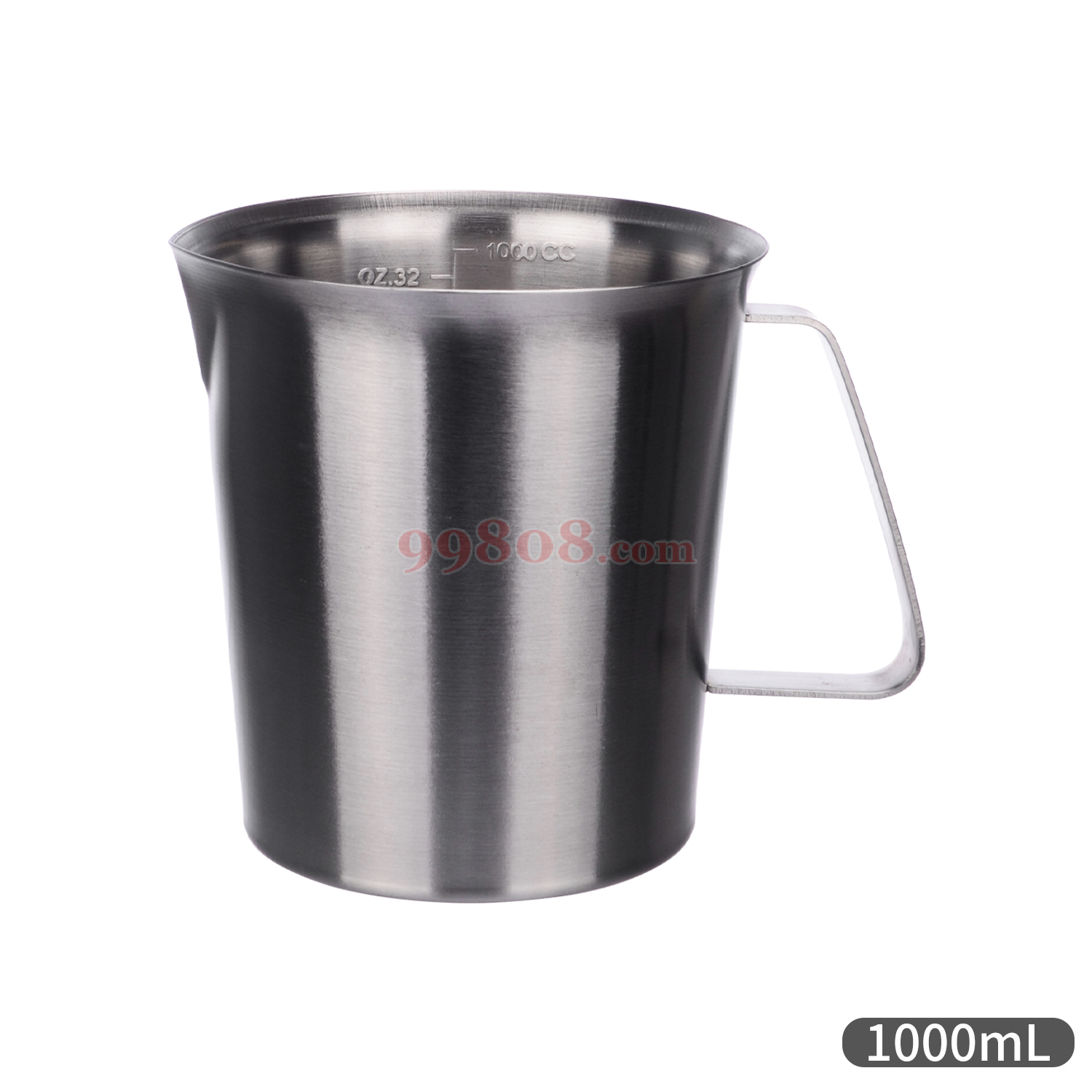 材质:304 不锈钢 杯口处理后不锋利,整个杯体美观大方,光洁度高。加工精度高。量液体准确度高,误差小。 该产品适用于量由腐蚀性的液体, 和对卫生要求高的液体。用于食品,医药,油漆涂料,卫生, 精细化工等行业。 产品描述: ● 毫升/盎司,2种刻度 (1盎司=28.349523125克) ● 整体采用304不锈钢 ● 一次冲压成胚而后精工制作而成,激光点焊把手 ● 做工精良,用材考究,时尚大方,产品份量足,手感好 ● 内外Γ拉丝砂光抛处理,杯壁内阳凸钢刻度,立体感...