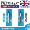 英国Thermax(TMC) 8格测温纸采用温度测量的新概念,在小型贴纸上布有一列方格,代表不同的温度值,当温度上升至该温度点时,方格会转变成黑色,即使随后温度降低,亦不会再回复到原来的颜色,如此便可以知道物体曾经历过的Γ 高温度,不须长时间在旁监视就可以知道是否有超温现象,或利用该试纸作为品质合格的有力证据。