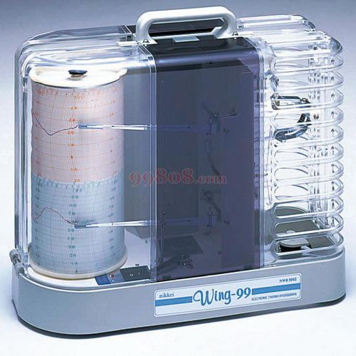 ●记录纸Γ小标度:温度/1℃、湿度/1% ●测试方式:温度/双金属、湿度/毛发(已做脱脂处理) ●测试精度:温度/±1.0℃、湿度/±3%(at20℃) ●时钟:石英钟?顺时针一周 ●记录时间:1日(24时)~99日(2376时) ●尺寸:336×140×285mm ●重量:2.8kg ●电源:3号干电池×2节(附带) ●带7天用记录纸(55张)