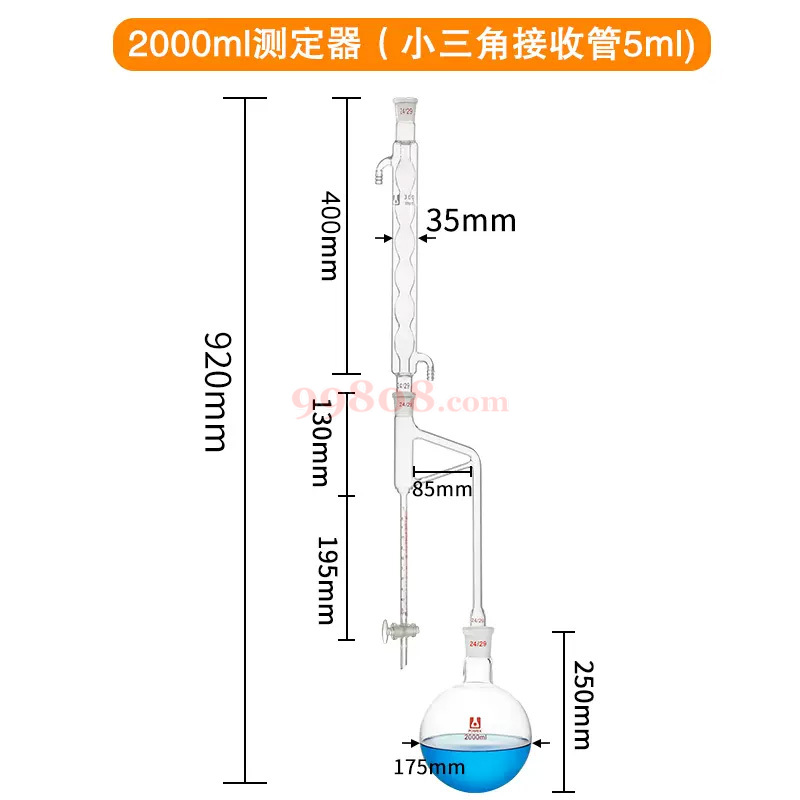 ReLAB | 磨口挥发油测定器 | 套装6:400/24*24球冷 中节 2000mL/24单口 小三角