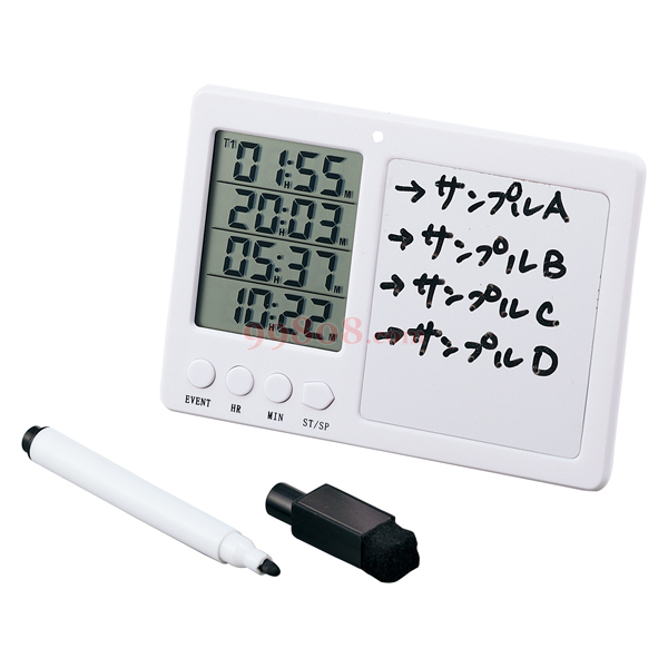 ●4个独立的定时器。●尺寸:123×86×24mm●功能:计时/倒计时?时钟功能?闹铃●Γ小设定时间:时/分模式/1分~23小时59分、分/秒模式/1分~59分●电源:4号干电池×2节(附带测试用)●带磁铁●附属品:标记笔