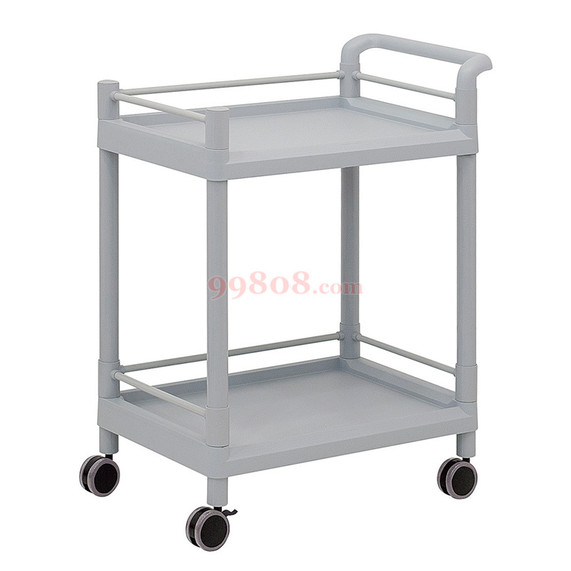 可操作性良好的轻量设计,品种丰富的移动台车系列 ● 不使用工具就可轻松组装・拆解。 ● 轻量而结实、使用方便的全塑料结构。 ● 顶板・搁板带有外框,防止掉落。 ● 材质:顶板・搁板/PP(聚丙烯)、支柱/ABS树脂 ● 搁板有效尺寸:552×403mm ● 搁板间隔:2层型/525mm、3层型/260mm ● 滚轮:φ75mm弹性体制(双轮・带2轮制动器) ● 耐负荷:50kg/层 ● 组合式