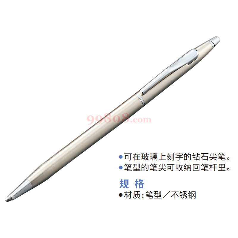 ●可在玻璃上刻字的钻石尖笔。 ●笔型的笔尖可收纳回笔杆里。 ●材质:笔型/不锈钢