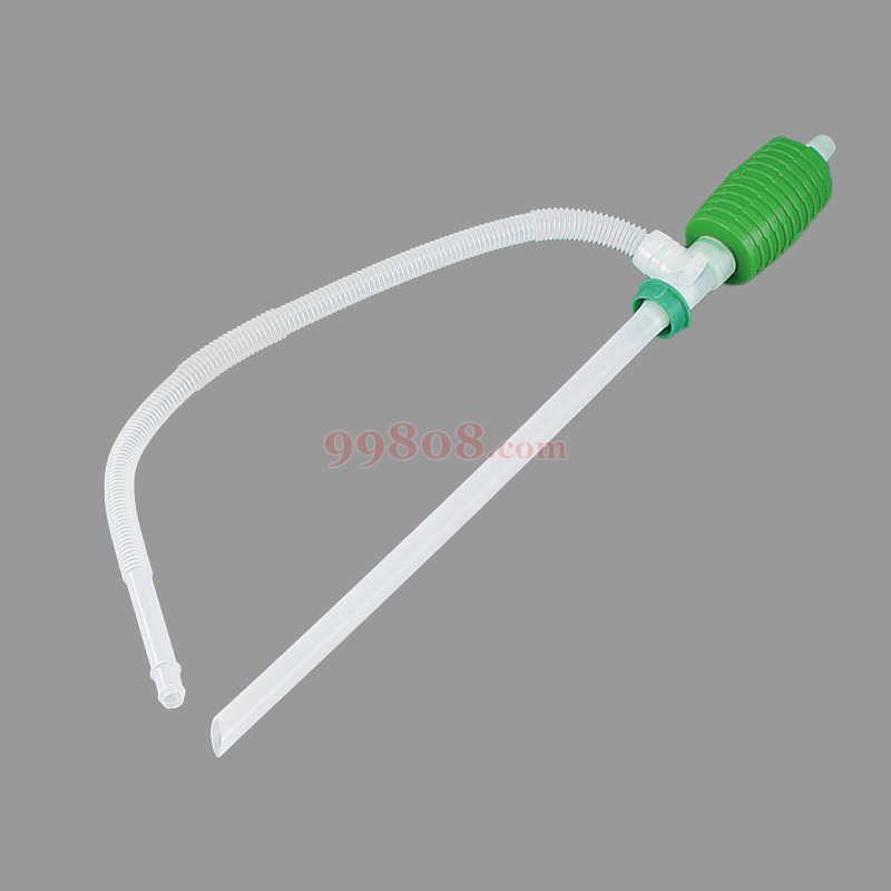 使用前必须把顶端螺帽拧紧,以免漏气。直管为进管,波纹管为出管,使用时把直管放入需要抽取的液体内,用手捏放泵球,液体就会自然流出,当液体高位向低位抽取时,待液体满管流出时,即可停止捏放,利用虹吸作用,让它自流,当不需要抽取时,可松开顶端螺帽或进管脱离液面即可,如果是低位想高位抽取时,则必须不停的捏放泵球!