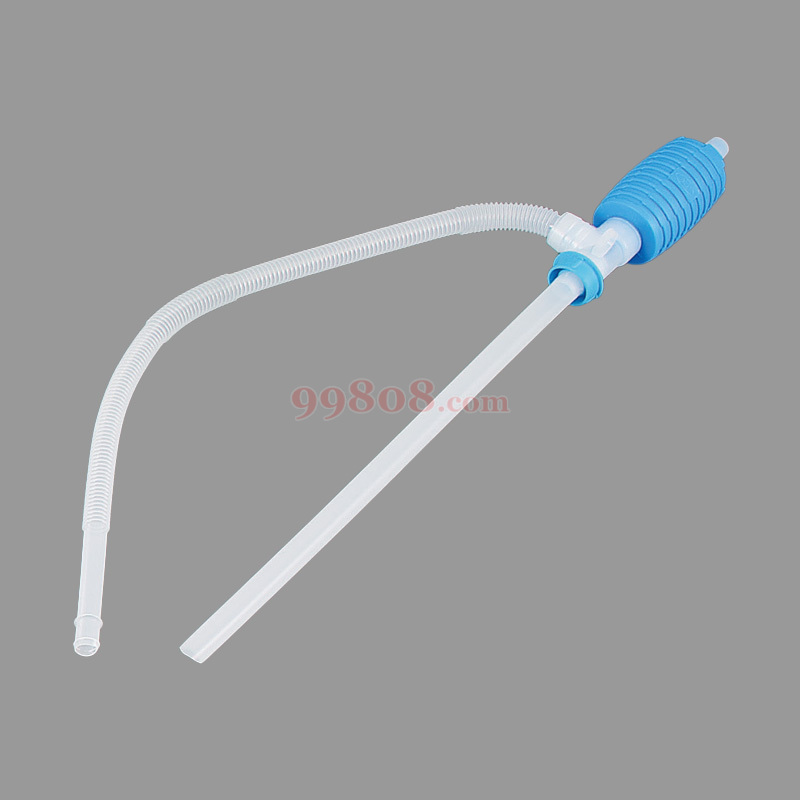 使用前必须把顶端螺帽拧紧,以免漏气。直管为进管,波纹管为出管,使用时把直管放入需要抽取的液体内,用手捏放泵球,液体就会自然流出,当液体高位向低位抽取时,待液体满管流出时,即可停止捏放,利用虹吸作用,让它自流,当不需要抽取时,可松开顶端螺帽或进管脱离液面即可,如果是低位想高位抽取时,则必须不停的捏放泵球!
