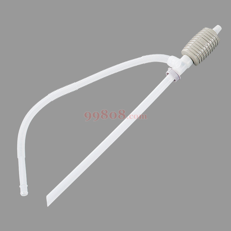 使用前必须把顶端螺帽拧紧,以免漏气。直管为进管,波纹管为出管,使用时把直管放入需要抽取的液体内,用手捏放泵球,液体就会自然流出,当液体高位向低位抽取时,待液体满管流出时,即可停止捏放,利用虹吸作用,让它自流,当不需要抽取时,可松开顶端螺帽或进管脱离液面即可,如果是低位想高位抽取时,则必须不停的捏放泵球!