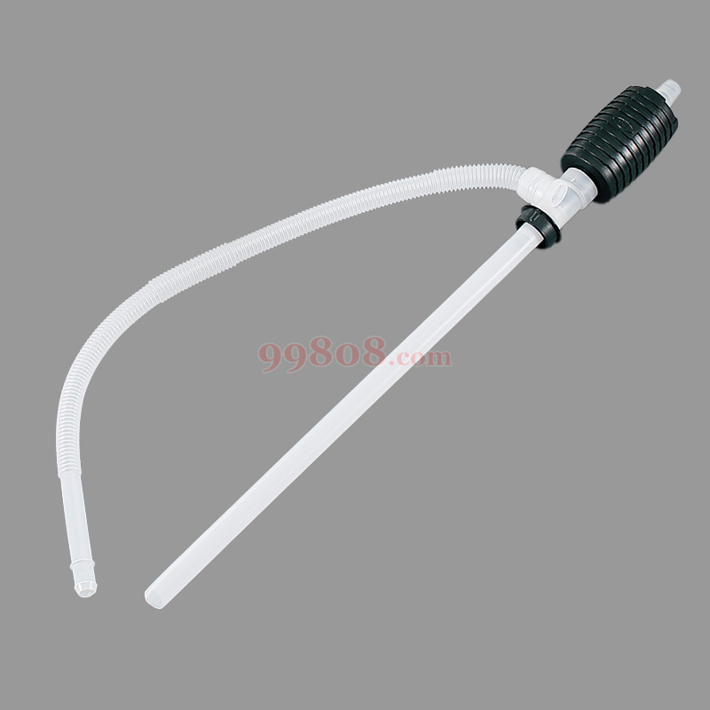 使用前必须把顶端螺帽拧紧,以免漏气。直管为进管,波纹管为出管,使用时把直管放入需要抽取的液体内,用手捏放泵球,液体就会自然流出,当液体高位向低位抽取时,待液体满管流出时,即可停止捏放,利用虹吸作用,让它自流,当不需要抽取时,可松开顶端螺帽或进管脱离液面即可,如果是低位想高位抽取时,则必须不停的捏放泵球!
