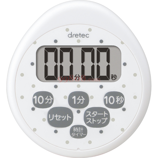 ● 带方便的时钟功能。 ● 弄脏了时候可以洗的防水定时器 ● 闹铃:15秒钟 ● 电源:CR2032钮扣电池×1节(附带测试用) ● 尺寸:82×90×14mm ● 重量:約45g ● 带有时钟・计时・重复功能 ● 带磁性・座架 ● 规格:JIS C0920 IPX7