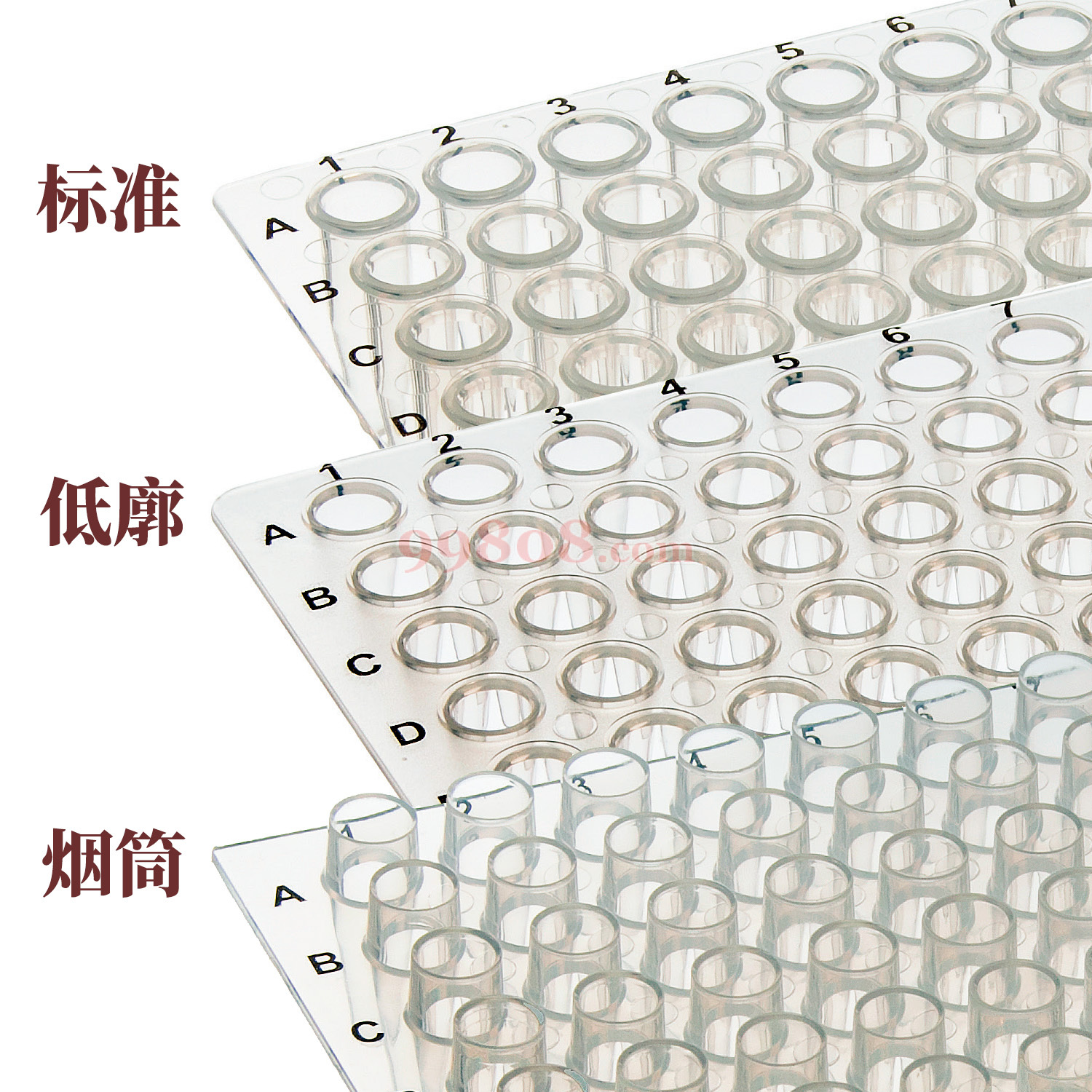 ●标识文字是黑色的,可清楚看到。 ●烟筒型的板从孔上部伸出5mm。 ●底廓型采用盖子与样品之间的空气空间少的结构,将蒸发控制在Γ低限度,适用于微量的PCR。 ●为防止密封时的样品蒸发,各孔都有边沿。 ●材质:PP ●孔数:96 ●无DNase无RNase无DNA