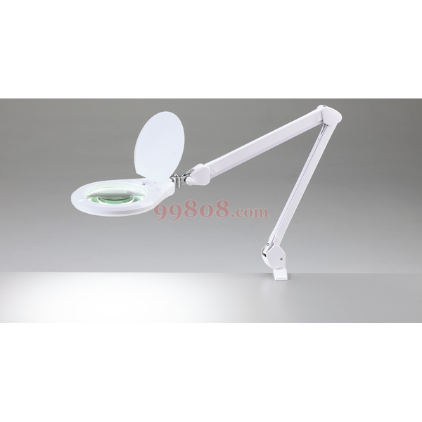 ●具有调光功能,可调整到喜欢的亮度。●采用不改变对象物体颜色的白色玻璃镜片。●通过放大镜与台臂的结合,可进行各种各样的角度调整。●可安装固定夹宽度:10~60mm●光源:LED×72个●功率:12W●臂长:上/460mm、下/470mm●电源:AC100~240V(附带AC适配器)●电源线长:1.8m●重量:约2.6kg●材质:主体/ABS?钢、镜片/玻璃