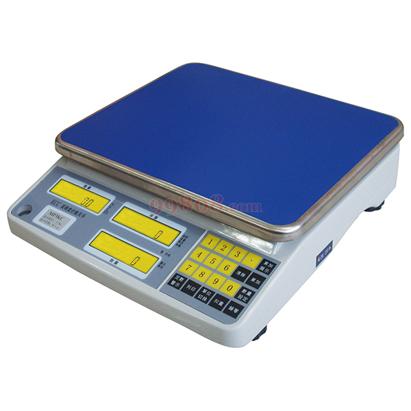 高精度、灵敏性好、产品丰富●液晶背光液晶显示。●三窗(数量、单重、重量显示窗)。●单位转换。●内置RS232接口。●秤盘尺寸:238×286mm●电源:220V 50Hz