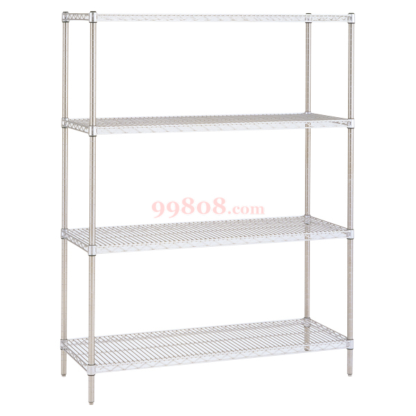 ●整体结构为活动式,便于组装和拆卸,层与层可上下调节。●有出色的开放性、采光性、通气性和耐久性、不会积尘、较卫生。●材质:不锈钢(SUS304) ●耐负荷:250kg ●层数:4●每块层板都可以上下任意调节(每节印25.4mm)●柱子的直径为25.4mm、厚度为1.2mm
