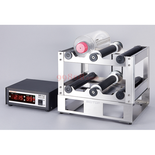 ●滚瓶机提供给客户经济有效的贴壁细胞培养解决方案。有2或4瓶位的选择余地,可以轻松一次性培养每瓶表面积为850cm2的贴壁细胞。●可以配套110-120mm标准内径滚瓶。在控制面板上直观显示当前速率与工作时间,容易操作与安装。配合滚瓶观察台,可以直接观察细胞的生长情况而无需消化观察。●速度范围:0~99RPH●标准瓶尺寸/表面积/工作温度:φ120×270mm/800cm2/-10℃~+50℃●转动方式:单向正传/单向反转●时间计时功能:可显示机器累积运转时间/外置遥控式控制●主机尺寸:385×...