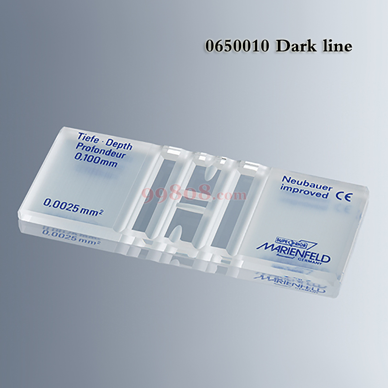 ●计算区位于中央,每一计算盘有2块计算区。 ●规格标示Bright-Line者为亮线刻画Dark-Line者为黑线刻画。 ●深度0.1mm,每格面积0.0025mm2。 ●计算盘中央部份之表面经特殊加工抛光。 ●适用于红,白血球与血小板的分析,亦适用于细胞的计算/主要用于医学实验室。 ●材质:特殊光学玻璃
