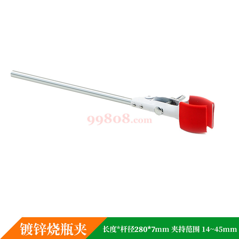烧瓶夹适用于科研,教学实验,医院,工矿企业化验室进行蒸馏,回流蒸馏装置时用于将冷凝管,烧瓶等仪器固定于铁台架的支柱上,也可以用于在三角架上做加热时将烧瓶固定于铁台架的支柱上用.