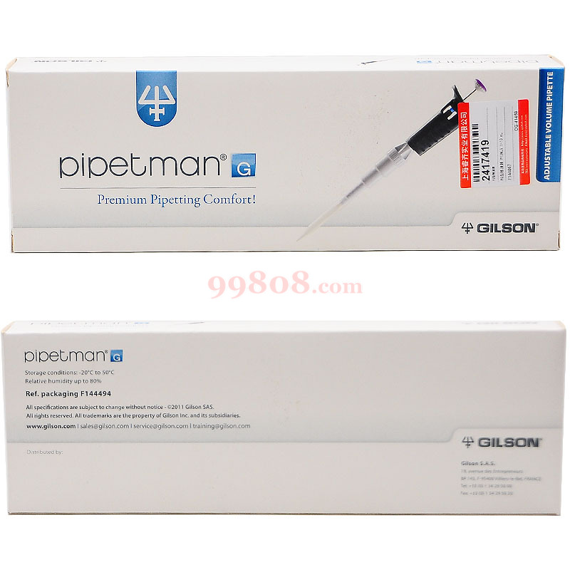 | 2417418 | PG型移液器 P5000G 500-5000ul | - | F144066 | Gilson/吉尔森 | 起售:1 批量:1 | 支 | ¥2900.00/支 | ||