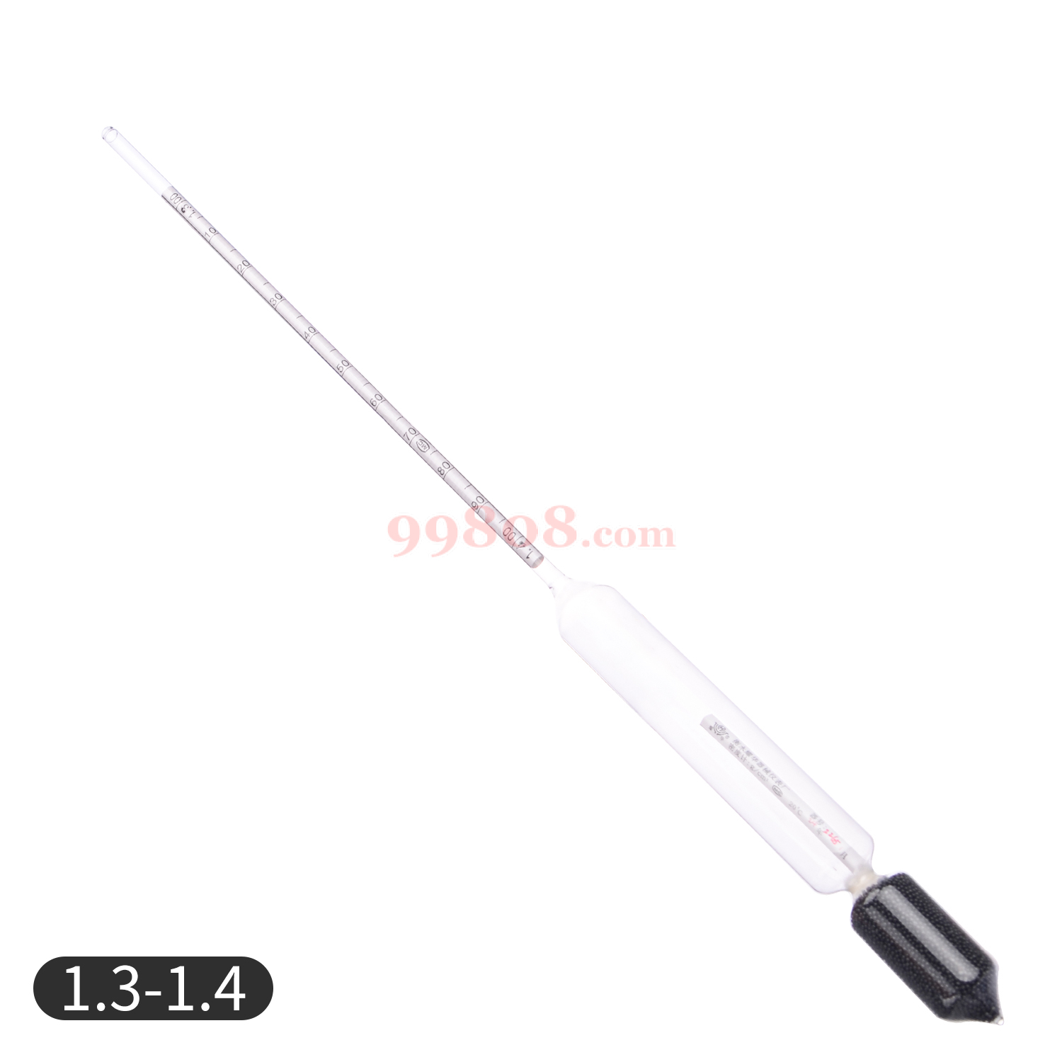 1.密度大于1000㎏/㎥的,用于测定各种酸碱、盐类水溶液的密度。例如酸中的硫酸、硝酸、盐酸以及某些无机酸或有机酸等济液,碱类中的氢氧化钠(烧碱),氢氧化钾等水济液,盐类中氯化锌,氯化钠等水济液。