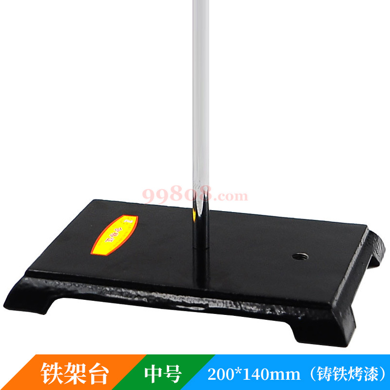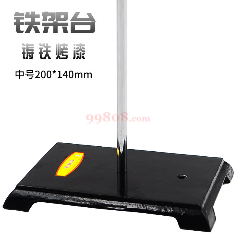 铁架台,底板为烤漆铸铁板,比滴定台稍薄,在试验室主要固定或放置其他配套仪器,如烧杯,酒精灯,冷凝管,漏斗等。 杆上夹具为图片展示用,需另购,商品含底座+杆。