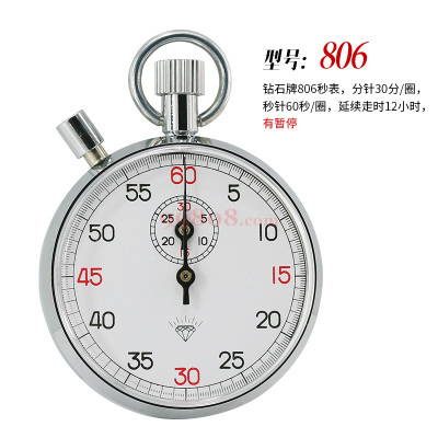规格:806号 有暂停键 Γ小读数:0.2秒 延续走时:≥12时 分针30分/圈 秒针60秒/圈