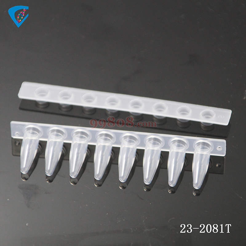 规格:0.2ml 8联排实时荧光定量PCR管+盖 平盖 透明 超薄壁 非灭菌【23-2081T】