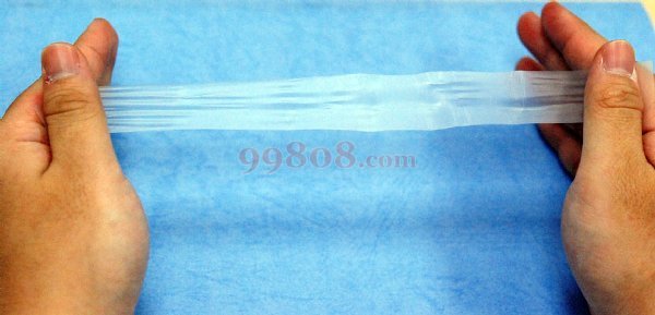 将M膜均匀拉开,约可拉至2~3倍长,拉开后密封效果更佳