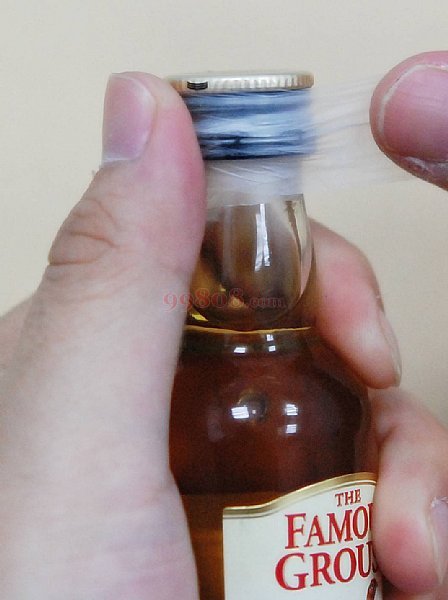 酒标也不放过,缠绕方式与瓶口一样,左手拇指轻压M膜一端,左手慢慢旋转瓶身。一边缠绕一边轻压即可达到密封效果。