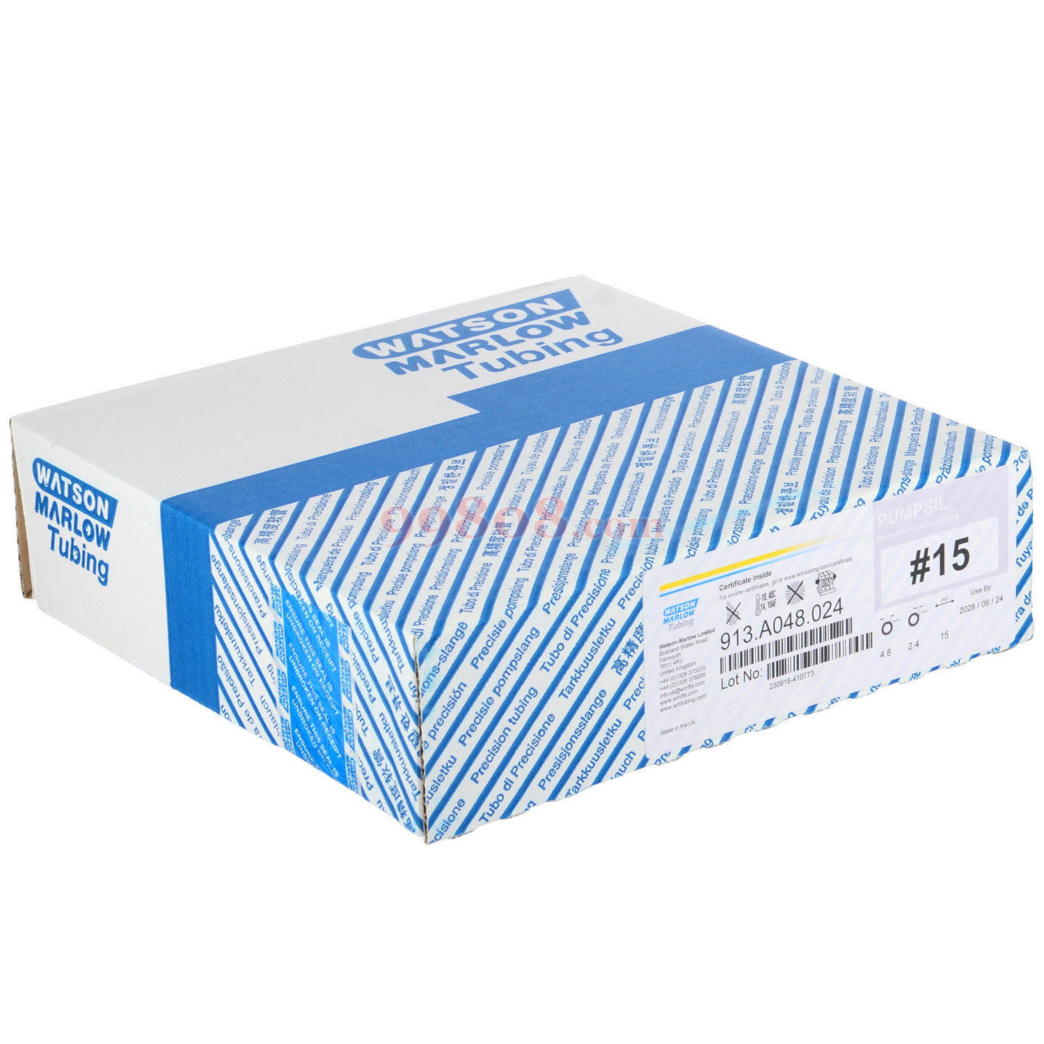 为了满足客户这种实际需求,每根Watson-Marlow Pumpsil®软管从头到尾均标有永久的激光标记的产品号、lot号和有效期。