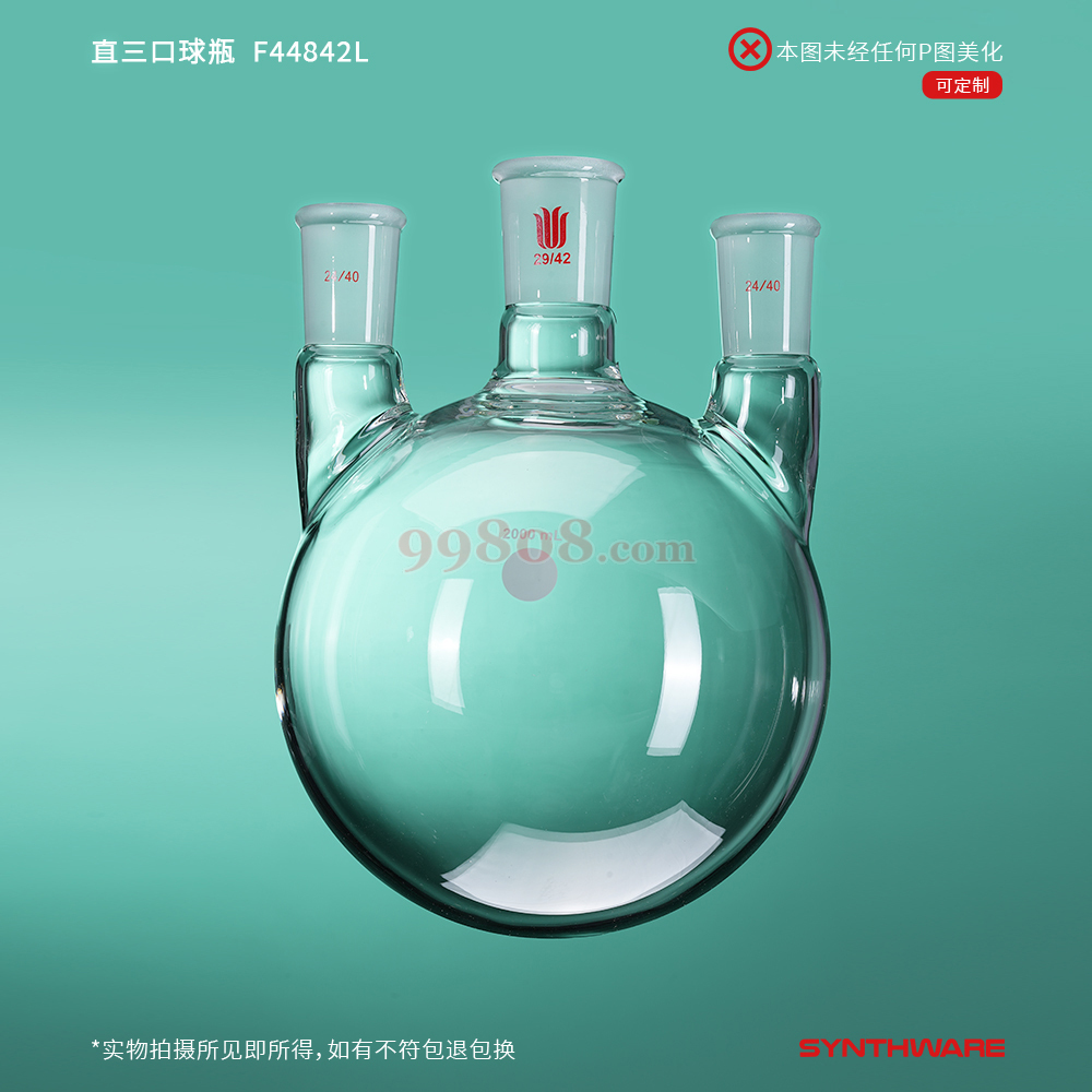 synthware/欣维尔 | 直三口球瓶 厚壁高强度 | 中间磨口:29/42,侧磨口:24/40,2000ml