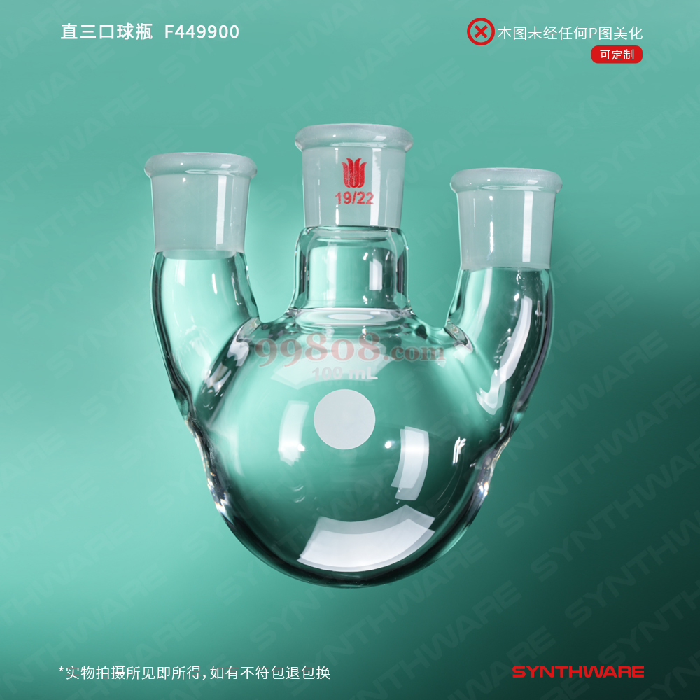synthware/欣维尔 | 直三口球瓶 厚壁高强度 | 中间磨口:19/22,侧磨口:19/22,100ml