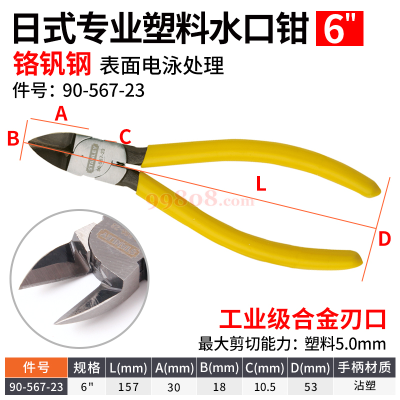 STANLEY 史丹利 | 日式专业塑料水口钳 | 6" 全长157mm