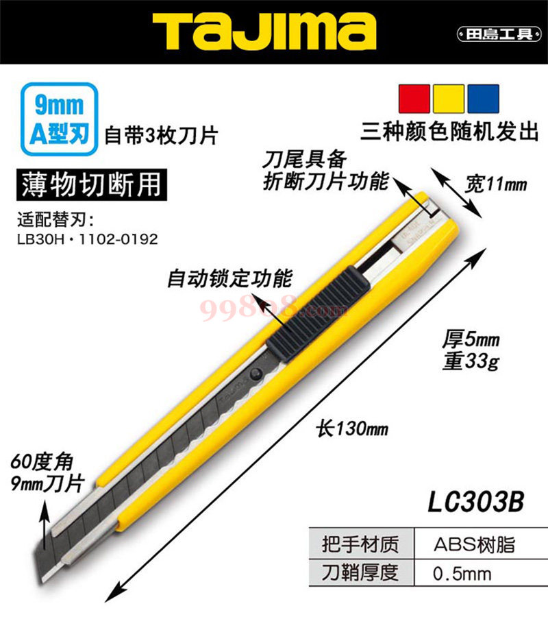 1101-0007 9mmA型刃 附2片银刃备用刀片(LC303B) 1把