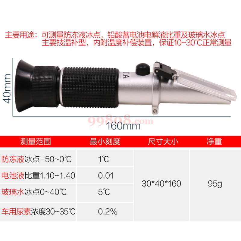 玻璃水冰点:0-40℃ Γ小刻度:5℃