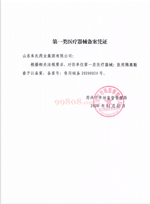 一类医疗备案凭证:鲁菏械备2020020号