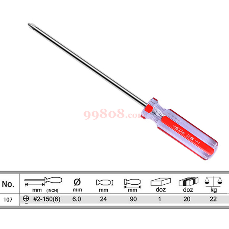 RUBICON/罗宾汉 | 107 磁力彩条螺丝刀 | 107-6/#2*150mm十字
