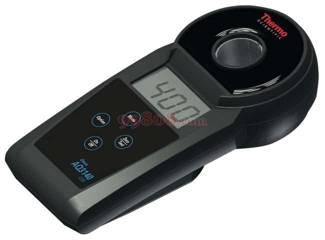 Thermo Scientific™ Orion™ AQUAfast™ AQ3140 COD 比色计是一款用于测定水中化学需氧量的单参数仪器。该比色计配备大尺寸数字背光显示屏、自动开关、用户友好型键盘、实时时钟和日期、校准模式、存储功能、防水样品室及其他多种功能,可提供准确、可重现的结果! AQUAfast AQ3140 比色计可用于污水处理、食品和饮料、水产养殖及农业等市场领域。&Orion AQUAfast AQ3140 COD 比色计适用于对水和废水(包括工业废水)进行专门的 COD(化学需氧量)检测,并设计用于帮助满足美国环保局对废水样品的 COD 测量的合规性要求。该比色计使用两个波长分别为 430nm 和 610nm 的 LED 光源,提供三种 COD 检测量程:0 至 150mg/L 的低量程、0 至 1500mg/L 的中量程,以及 0 至 15000mg/L 的高量程。AQ3140 COD 比色计通过 CE 认证,具有 IP-67 级防水性能,可使用 Orion AQUAfast 16mm COD 重铬酸盐消解管,有标准 25 管装和新的 150 管散装规格可供选择。Orion AQUAfast COD165 加热消解器也可作为单独附件用于消解试验。