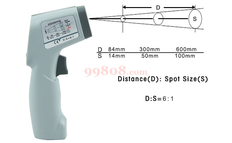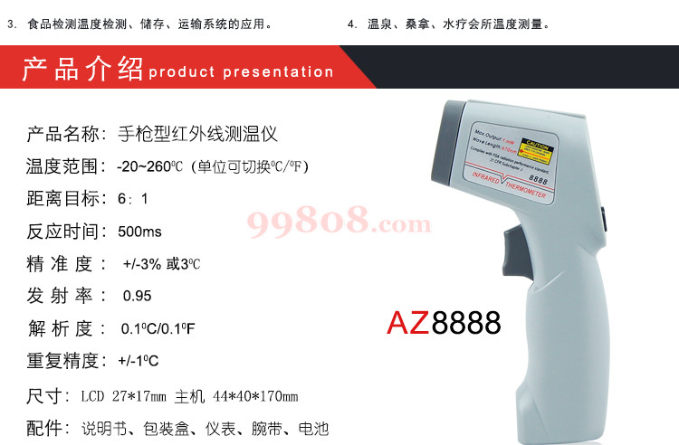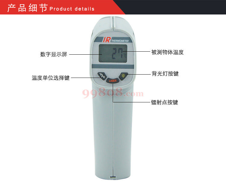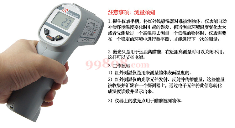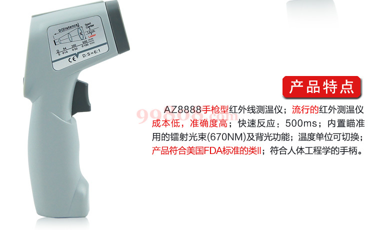 Γ新迷你小枪型机种,镭射光点,背光,温度单位可切换,8888/8890:内建0.95通用放射值,8889放射值可选择0.95/0.90/0.85轻按板机启动,操作方便