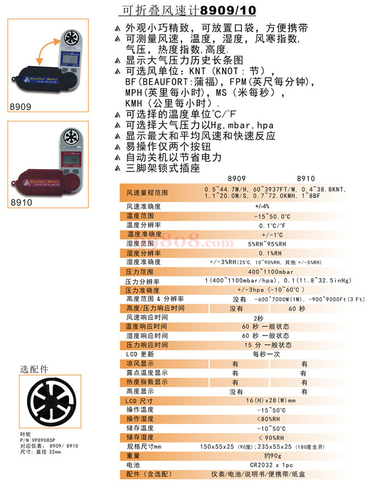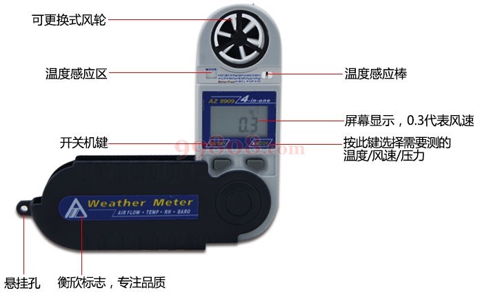 风速:1.1-20m/S,风温:-10~+51℃,湿度:0-100%RH,大气压:400-1100hPa