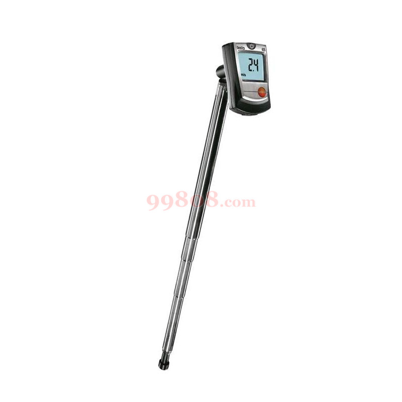 testo 405迷你热线风速仪配有可伸缩式手柄,并可测量风速、风量和空气温度。风速测量范围为0-10 m/s,风量可计算至99,990 m3/h。
