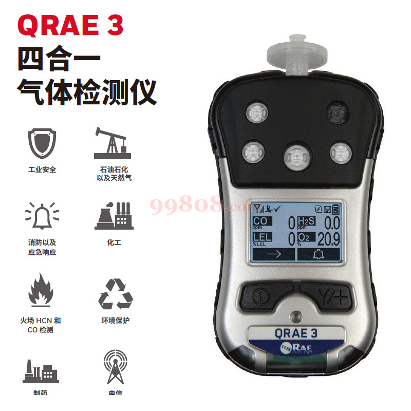 QRAE 3 复合式气体检测仪,可对氧气(O2)、可燃气、包括一氧化碳(CO)、硫化氢(H2S)、二氧化硫(SO2)及氰化氢(HCN)在内的多种毒性气体进行检测。 QRAE 3 可实时将仪器读数以及报警信息通过无线传输,这提供了更好的事故可预见性,能够缩短响应时间。