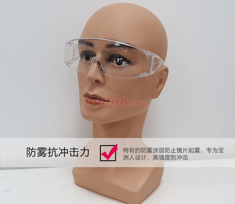 1、眼镜折合状态、镜片透明、防冲击、防雾、特有的防刮擦镜片,防护效果更持久