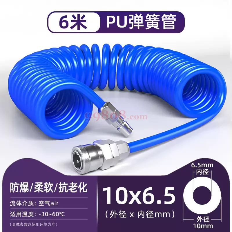 其它/Others | PU弹簧气管-带碳钢快速接头 | 10*6.5mm 6米长 蓝色