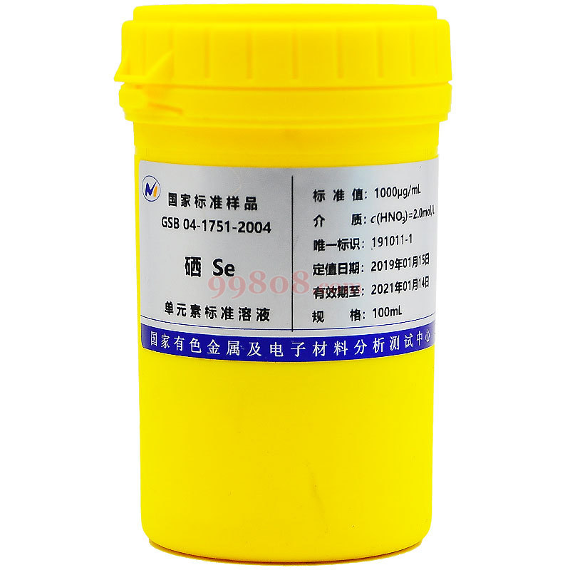 北京有色金属研究总院研制,100mL起浓度可定制。本液体标准广泛用于ICP-AES法、ICP-MS法、ICP-AFS法、原子吸收光谱法(AAS)、离子选择性电极光(ISE)、离子色谱法(IC)、分光光度法(COL)分析测试使用。可以在科学研究、实时检测、量值检验、质量控制、实验室认可、产品质量认证、数据对比、制定和评价检测方法、校准仪器、考核操作人员等相关工作中使用。