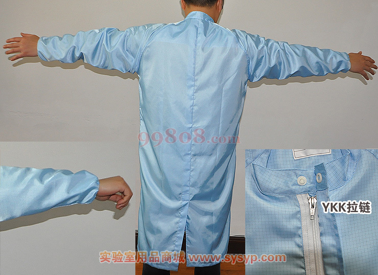 罩衫式外套,聚酯100%,颜色:白/蓝,袖子橡胶,前面拉链 领子规格:领子为竖领。拉链开口部位通过内襟翼进行防护。 袖口规格:与手腕紧贴的袖口橡胶、防止尘埃流出。 下摆规格:通过下摆的狭缝确保活动的便利性。 需定制,订货周期为7个工作日。订购请告知需要的颜色