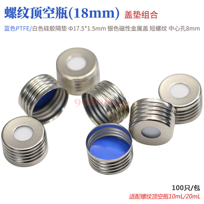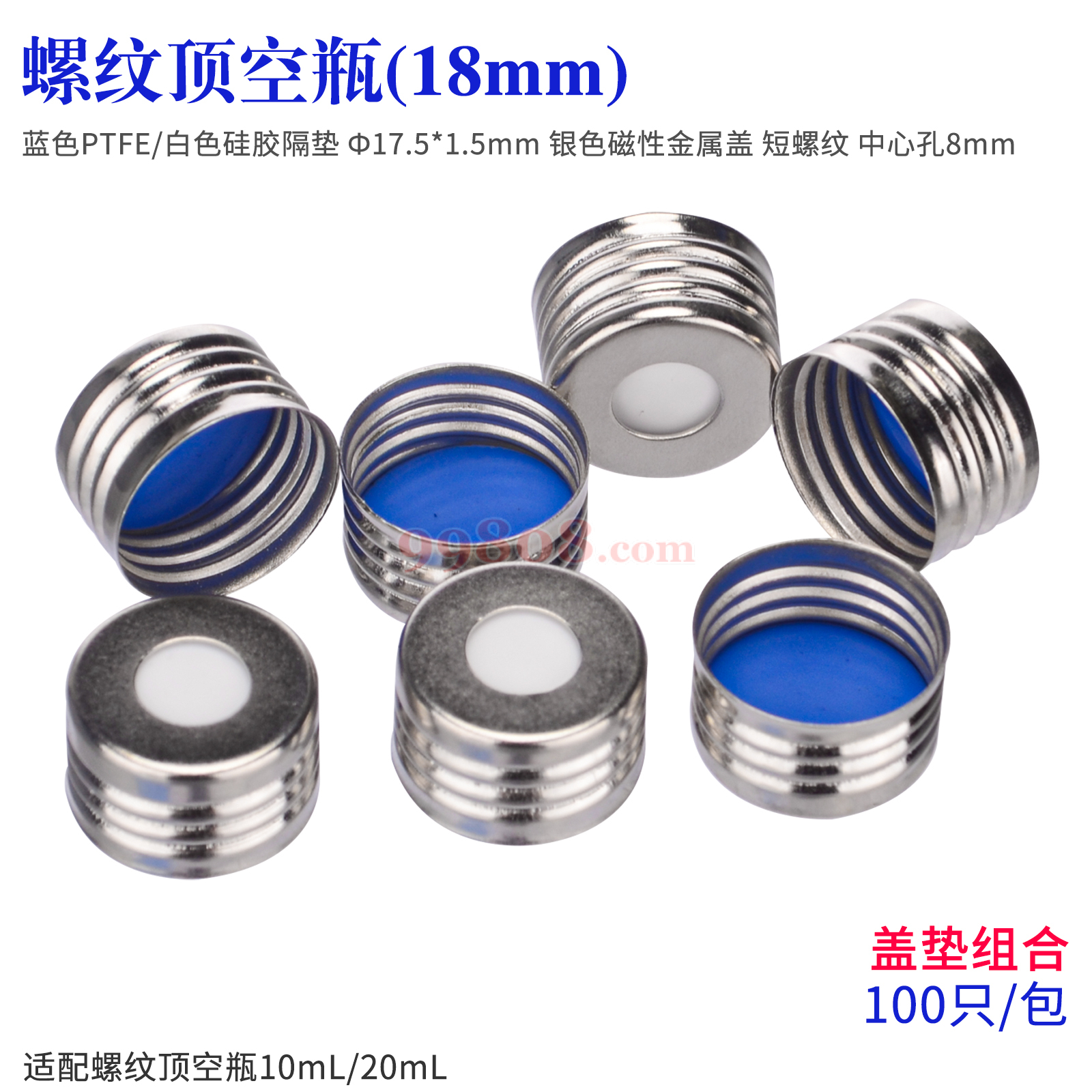 ReLAB | 螺纹顶空瓶(18mm) | 盖垫:蓝色四氟乙烯/白色硅胶隔垫Ф17.5*1.5mm 银色磁性金属盖 短螺纹 中心孔8mm