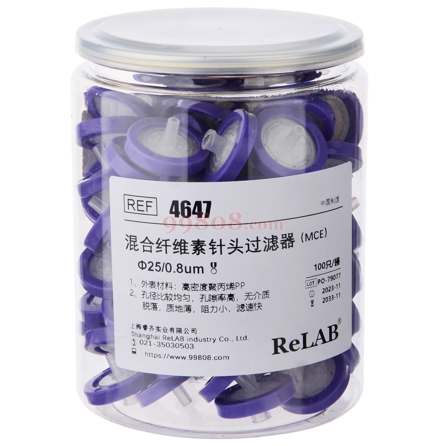 ReLAB | 混合纤维素MCE一次性针头过滤器 | Ф25/0.8um