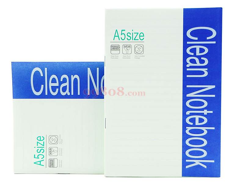 采用CLEANTEK专业的无尘纸纸装订而成,显著减少微尘的产生,增强的墨水吸收能力。能将装订型净化笔记本的装订孔产生的微尘降低到Γ少。 ● 能在水中分解,可回收。 ● 通过特殊表面处理,尽量减少微粒污染。 ● 表面平滑度良好,防止卡纸。 ● 通过ESD表面静电处理,防止微粒吸附现 ● 吸收油墨性良好,防止因油墨扩散的污染。 ● 因湿度,温度导致的尺寸变化很小。 ● 使用范围:电子厂无尘洁净室的书写记录用纸或打印用纸。