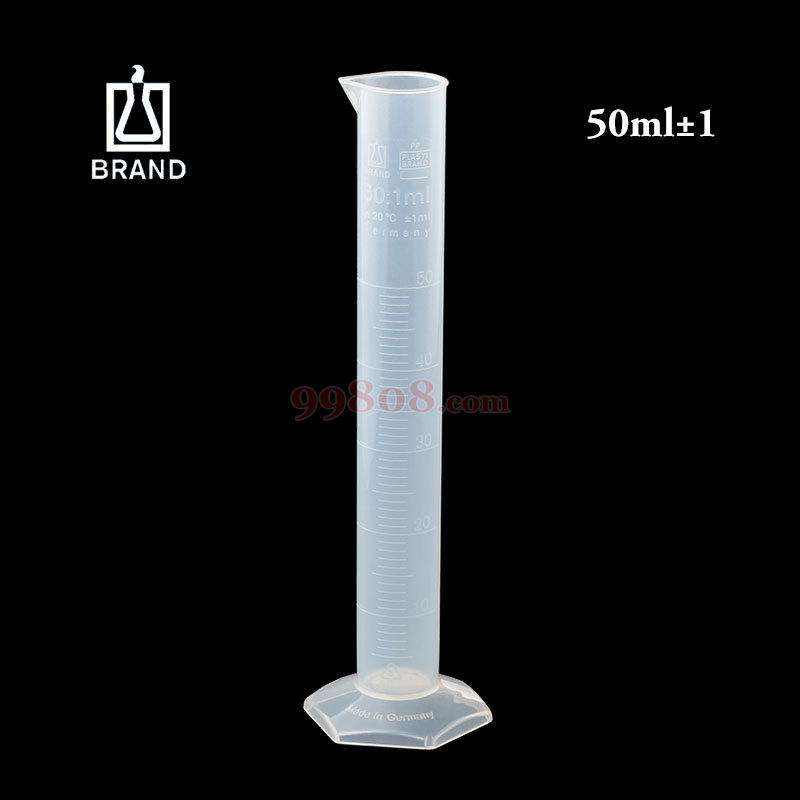 PP材质,高透明度。依照 DIN 12 681 及 ISO 6706 标准。(TC, In) 校准。温度高至80 °C,不会造成永久性的超过误差范围的损伤。为确保刻度及印刷标识清晰可辨,清洗温度建议低于 60 °C。