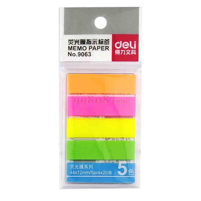 | 503279 | 44*12mm 20张*5PCS 荧光膜指示标签 抽取式 | 5本/包 | 9060 | Deli/得力 | 起售:5 批量:1 | 包 | ¥6.60/包 | ||