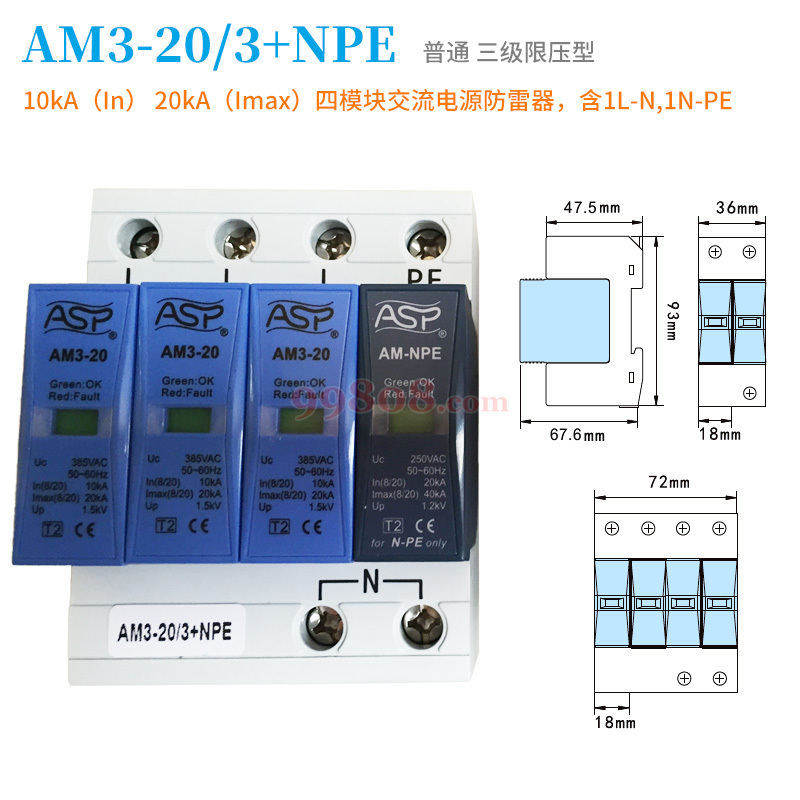| 512935当前 | 10kA(In)20kA(Imax)四模块交流电含3P L-N,1N-PE | - | AM3-20/3+NPE | ASP/上海雷迅 | 起售:1 批量:1 | 只 | ¥332.00/只 | 当前项目 | |